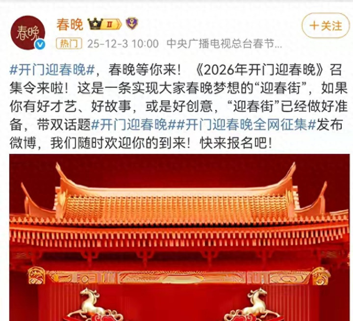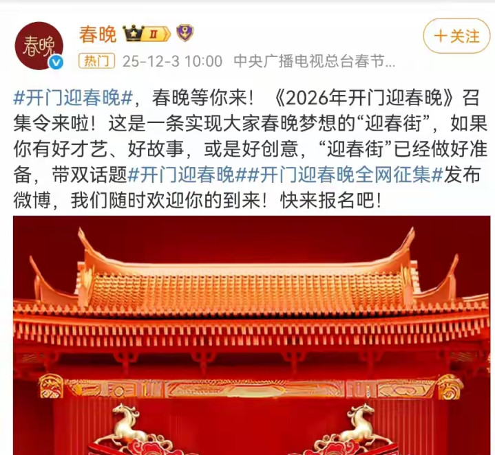 央视春晚官方微博(2026.12.3)