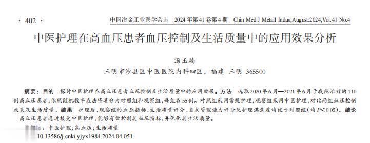 参考贵府[1]汤玉楠.中医照看在高血压患者血压截至及生存质料中的愚弄后果分析开云体育(中国)官方网站,中国冶金工业医学杂志,2024-08-01