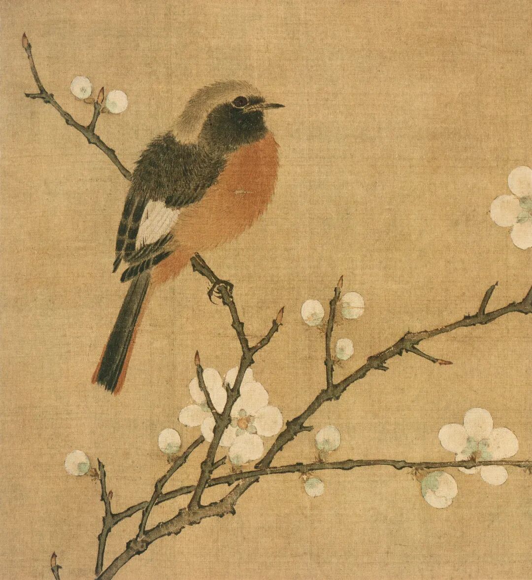 宋 佚名 白梅翠禽图(局部) 绢本设色 23.8cm×24.5cm