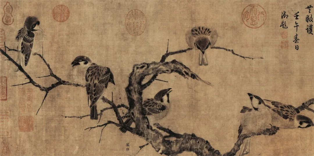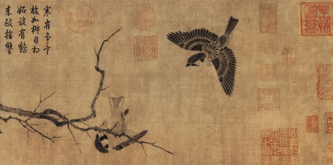 宋 崔白 寒雀图 绢本设色 25.5cm×101.4cm