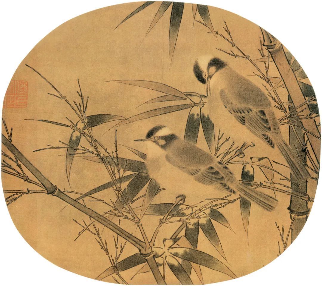 宋 佚名 白头丛竹图 纨扇 绢本设色