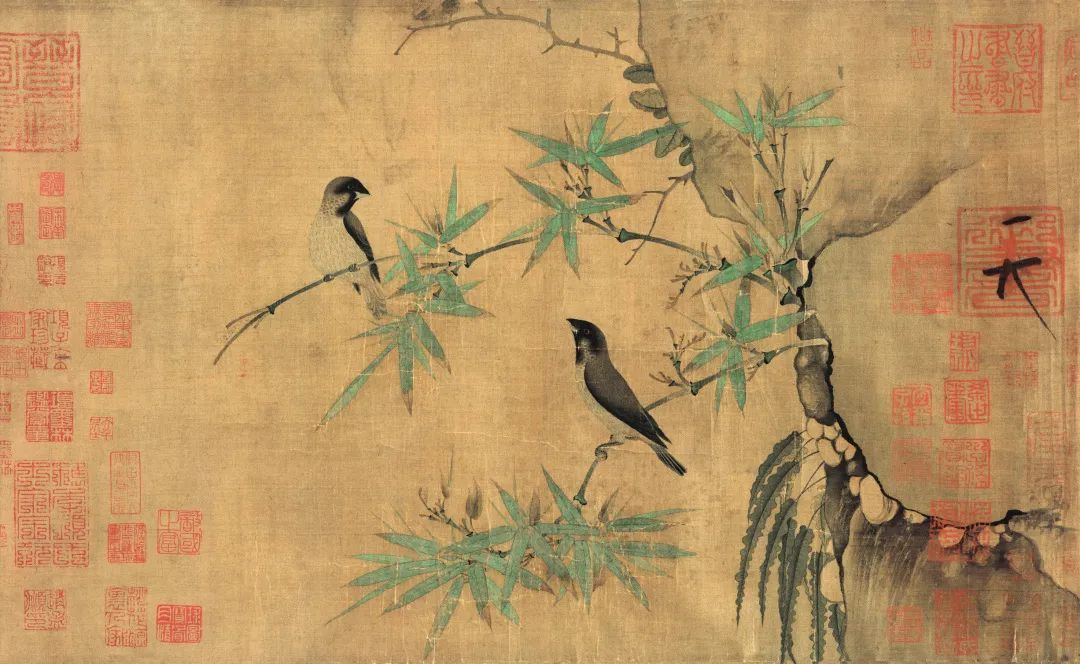 宋 赵佶 竹禽图 绢本设色 33.8cm×55.4cm