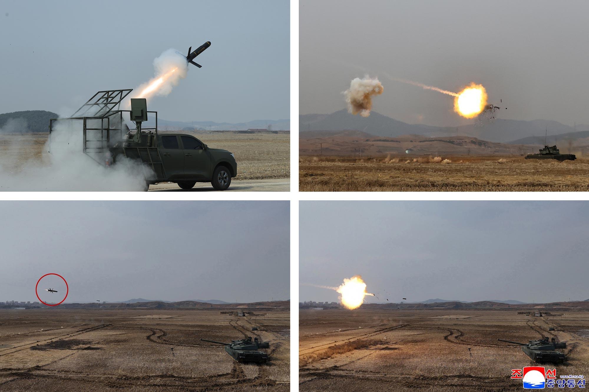 证据朝中社公布的像片可知,这次测试动用了3款新式反坦克导弹、1款单兵反坦克火箭筒以及多款寻短见式无东谈主机,挫折模式涵盖了传统直射打击与当代主流的攻顶打击,扫数来袭目的均被主动注重系统得胜遏抑。